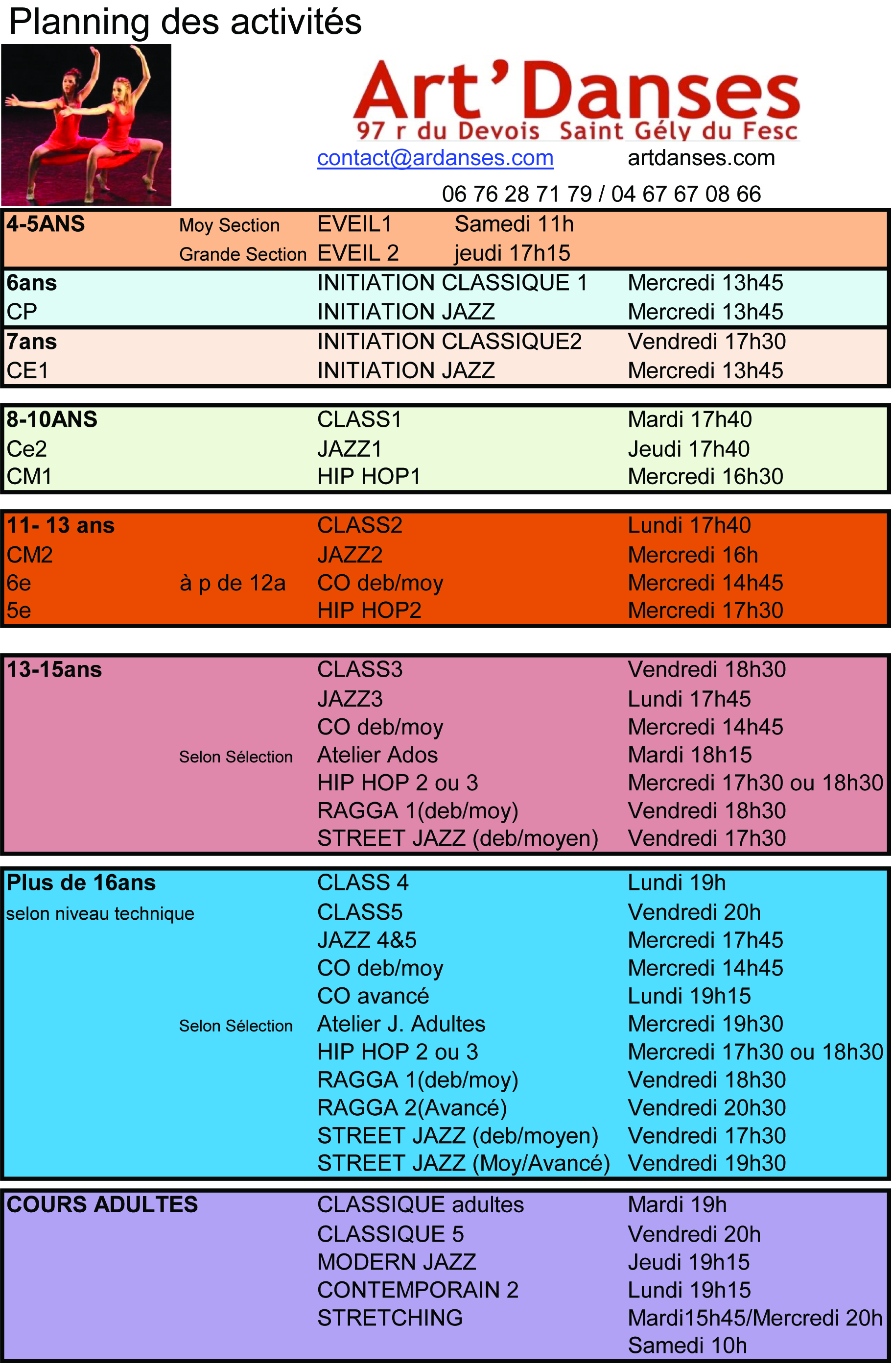 Ecole de Danse Classique, Modern Jazz, Contemporaine, Hip-Hop, Street Jazz,Salsa; Centre de Yoga, Pilates
