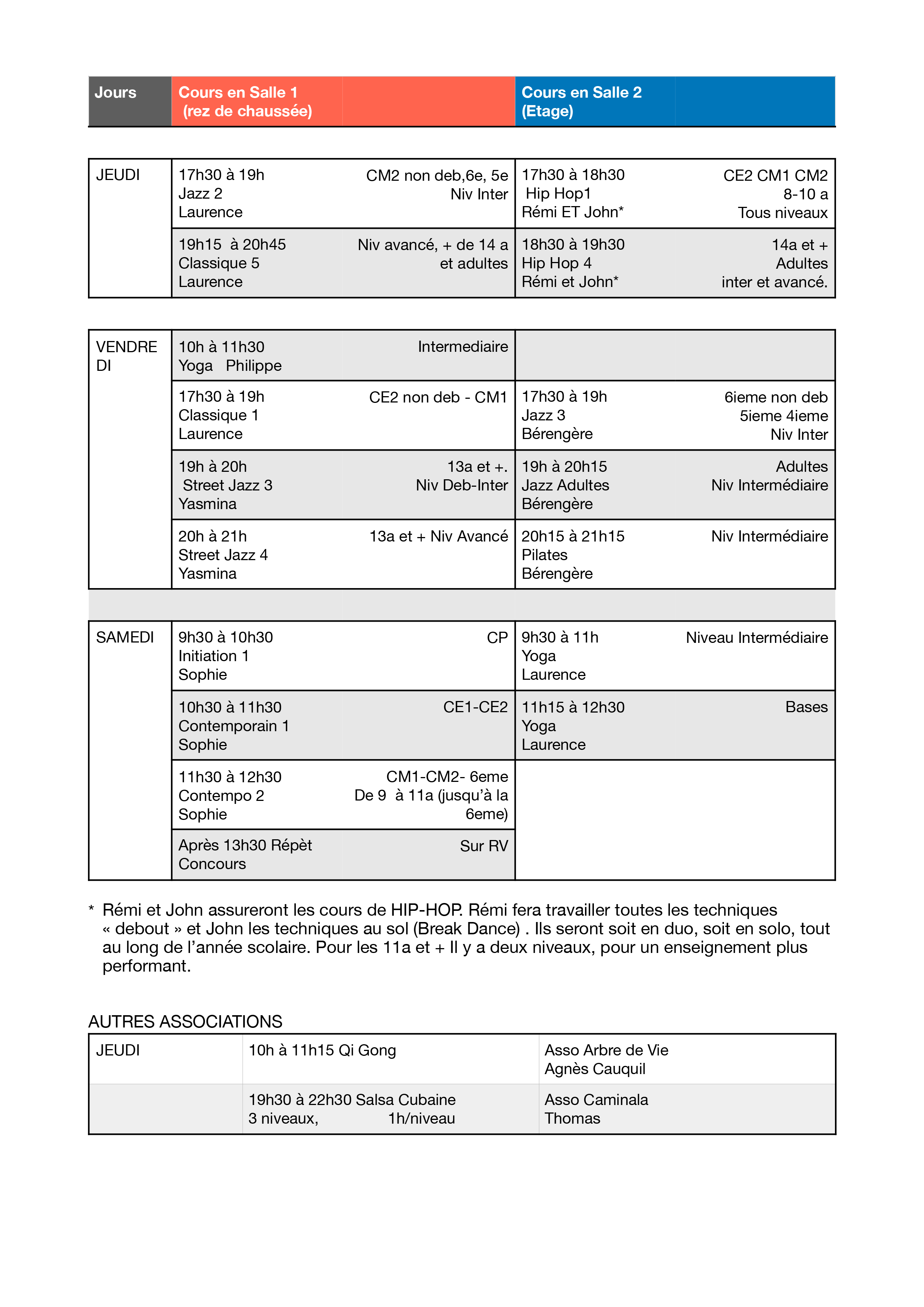 • Descriptif des cours de Danse