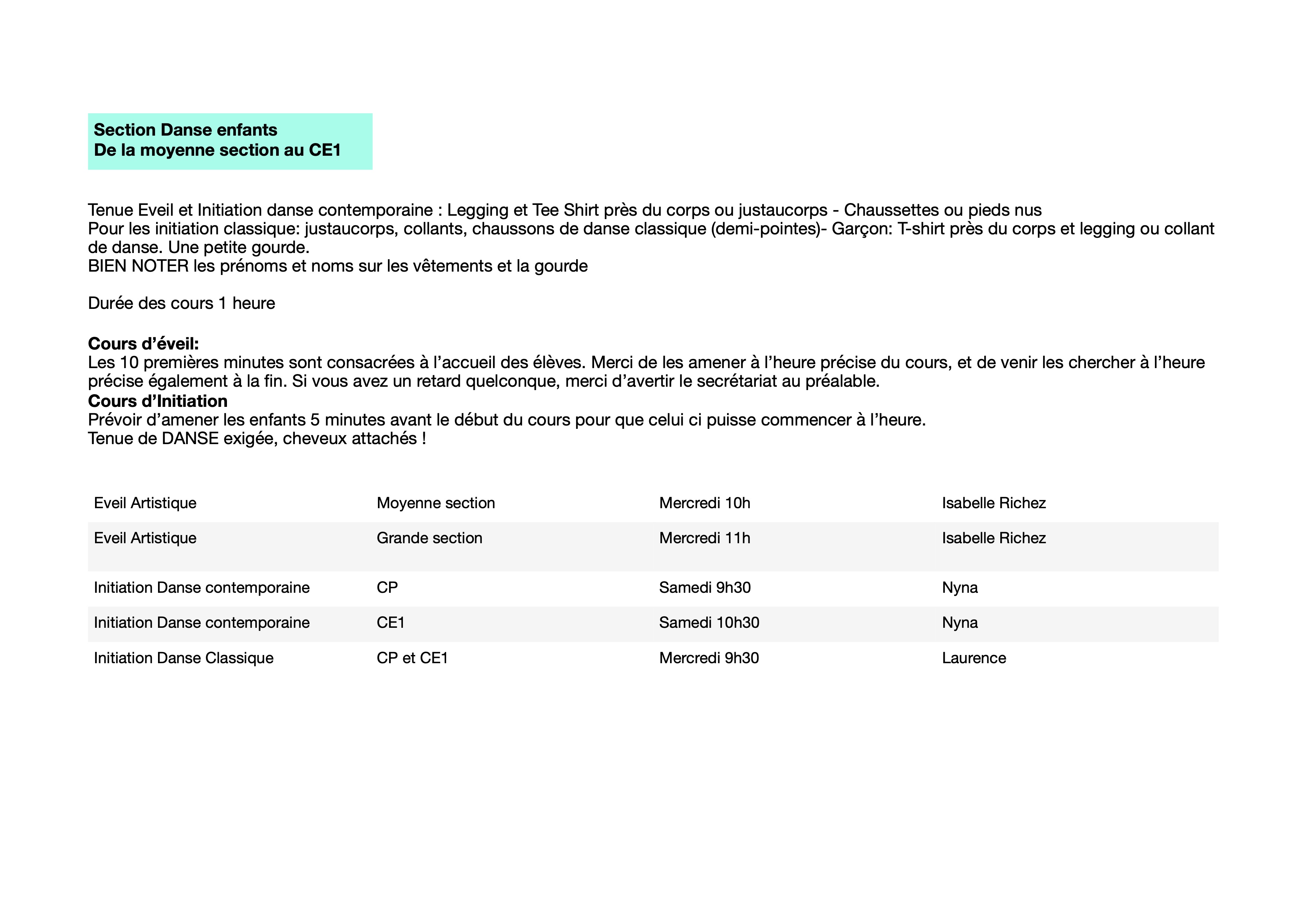 • Descriptif des cours enfants-PS à CE1