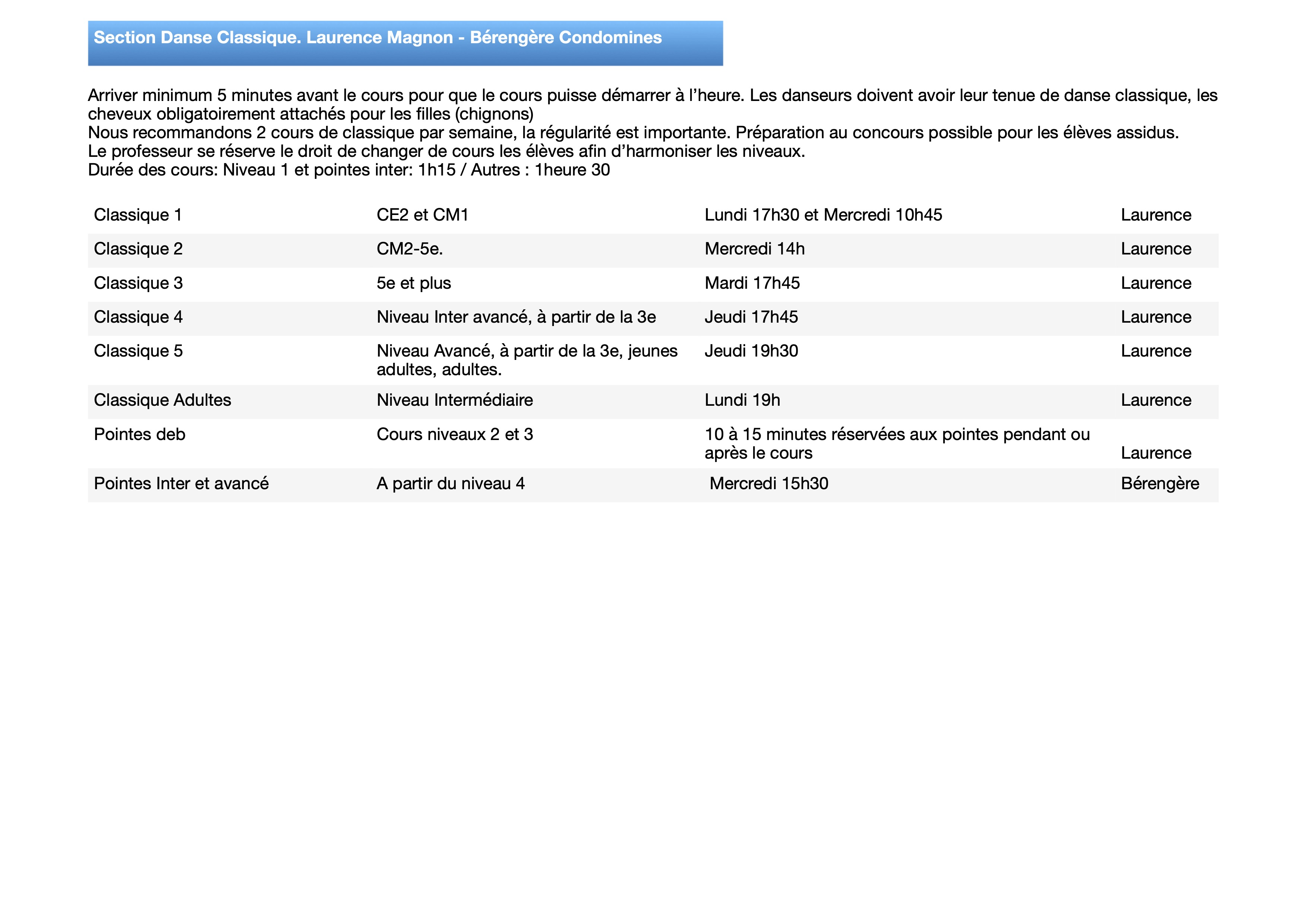 • Descriptif des cours de Danse